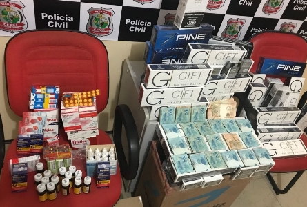 Ao chegarem ao local, os policiais localizaram Francisco Rigoberto Rodrigues Oliveira (62), proprietário do estabelecimento, e seu filho, João Vitor Dutra Oliveira (33), e deram início às buscas, mas nenhum armamento foi encontrado. No entanto, a equipe notou a existência de vários maços de cigarros importados, de venda proibida no Brasil. Ficou constatado ainda que medicamentos também eram vendidos no local, que não possuía autorização para esse tipo de comércio.