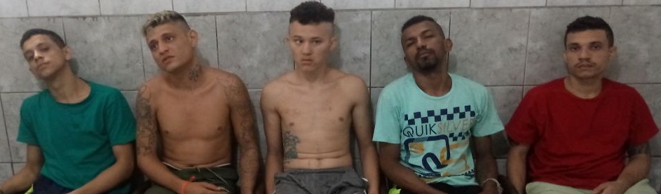 Após a captura do menor, os PMs seguiram para uma residência na Rua dos Monarcas, no bairro Pici. No imóvel, não foram localizados materiais ilícitos, no entanto, os militares encontraram os cinco homens. Os presos foram identificados como Jhonatas Gomes Souza (22), vulgo “Filhote”, que já responde a cinco procedimentos por roubos e tentativa de homicídio; Edmundo da Silva Sousa (22), que responde a dois procedimentos por roubo; Antônio Wanderson Silva Barbosa (20), que responde por porte ilegal de arma de fogo e roubo; Paulo Henrique Alves Freitas (28), vulgo “ZL”, que responde a cinco procedimentos policiais por roubo, tráfico de drogas e porte ilegal de arma de fogo; e Igor de Sousa Nascimento (22), que responde a procedimentos policiais por roubo, porte ilegal de arma de fogo e ameaça.