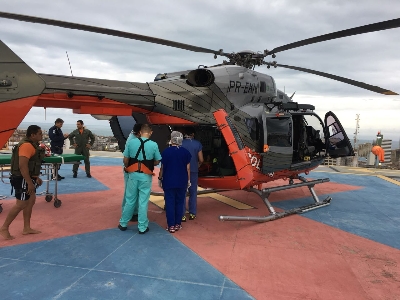 A aeronave Fênix 06 foi a responsável pelo atendimento aeromédico da paciente, que apresentava trauma abdominal grave. Ela foi devidamente imobilizada e em seguida transportada para uma unidade de saúde, onde foi submetida à cirurgia.