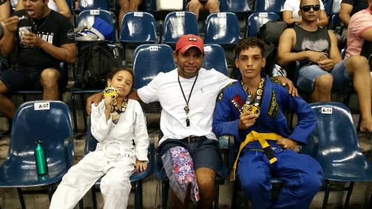 Dois alunos do projeto “Lutando Pela Paz”, realizado em unidades da Polícia Militar, ganharam medalha de ouro no Campeonato Summer de jiu-jítsu, torneio que abre o calendário de competições da Federação de jiu-jítsu do Estado do Ceará. Gustavo Paulino (14) e Júlia Feitosa (8) se destacaram e subiram ao lugar mais alto do pódio nas categorias infantojuvenil masculina e infantil feminina, respectivamente. A disputa, que teve o Ginásio Paulo Sarasate como palco, contou com mais de 500 inscritos.