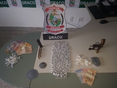 Como parte das ações policiais desencadeadas no bairro Barroso, Área Integrada de Segurança 03 (AIS 03), a Polícia Civil do Estado do Ceará (PCCE) deflagrou uma operação, na manhã dessa quinta-feira (08), que resultou na prisão do homem apontado como o chefe do tráfico de drogas na comunidade do Gereba. Com cinco antecedentes criminais por homicídio, Luciano da Silva (26) – conhecido por “Macacão” – tentou empreender fuga na ação, mas foi rapidamente capturado pelos profissionais de segurança que participaram da ofensiva. Outras duas pessoas, que estavam com mandados de prisão em aberto, também foram presas.