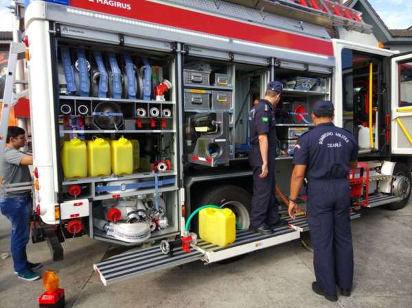 Visando trazer inovações tecnológicas aplicadas à atividade bombeiro-militar, o tenente coronel Valdênio Goiana, o major Álder Teixeira e o major Orlando Sá, ambos da Célula de Logística do CBMCE (setor responsável pelo patrimônio da corporação) compareceram ao “Magirus Day”, na cidade de Curitiba-PR. O evento teve como público alvo os Corpos de Bombeiros Militares dos nove estados do Nordeste, além do Rio Grande do Sul, e o tema central foi a apresentação de novas viaturas e equipamentos bombeirísticos.