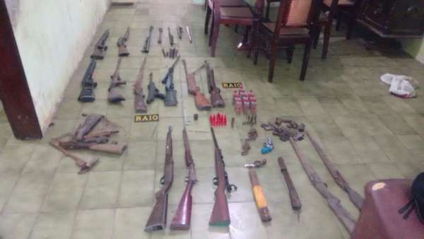 A composição entrou na casa e, após vistoria, foi comprovada a veracidade da denúncia. Os militares encontraram dois revólveres, uma espingarda tipo socadeira, três rifles, várias munições de diversos calibres, 11 coronhas, um rosqueador de metal, duas cascas de metal de cartucho de espingarda, 10 tubos de pólvora utilizado para caça de falcão, 10 canos de espingarda de calibres variados, cinco coronhas para espingardas, duas socadeiras, dois chassis de revólveres e três espingardas de pressão.