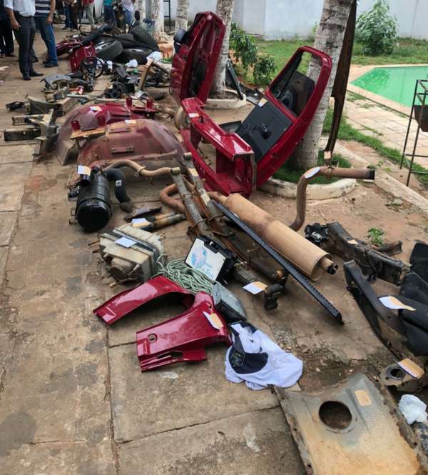 Foram apreendidas peças de carros como: capô de Hilux, bancos dianteiros, caixas de marchas, portas dianteiras e traseiras, pára-choques, radiadores, faróis, jogos de cintos de segurança, retrovisores, airbags, entre outros. Os militares efetuaram também uma vistoria em uma loja de peças, de propriedade do casal suspeito da prática ilícita, sendo encontradas, mais peças roubadas, que estavam sendo comercializadas e dez munições de arma de fogo, que também foram apreendidas.