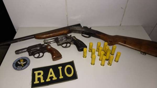 Durante as revistas na residência, os agentes de segurança encontraram dois revólveres. As composições também realizaram revistas, na residência do comparsa de Helialdo, identificado como Isaac Dias de Souza (30), que já responde por crime contra a administração pública. No local, foi encontrada uma escopeta calibre 20, com 13 cartuchos intactos e um cartucho deflagrado.