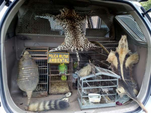 Os militares realizavam fiscalização na cidade, quando receberam uma denúncia de aves criadas em cativeiro. Chegando ao local, uma oficina mecânica, foi constatada a veracidade da denúncia. O suspeito, identificado como José Tupinambá Rodrigues Lopes, estava com sete pássaros da fauna silvestre engaiolados. Durante averiguação no local, foi encontrado couro de tamanduá mirim, couro de jaguatirica, casco de cágado e de tatu, um rabo de guaxinim e uma avoante empalhada.