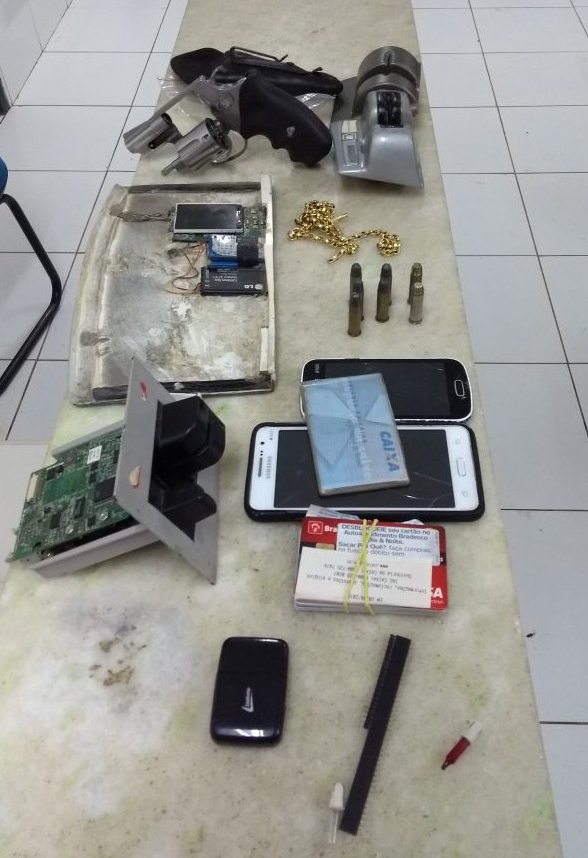 Foi encontrado, ainda, um revólver calibre 38 e sete munições; além de notebook, um aparelho conhecido por “chupa cabra” e equipamentos aplicados na instalação do componente, que copia as credenciais dos usuários de caixas eletrônicos. Marcelo foi encaminhado à sede da Delegacia Regional de Crateús, onde foi autuado em flagrante por receptação e posse ilegal de arma de fogo. Agora, a Polícia Civil trabalha para identificar se existem outras pessoas envolvidas no esquema criminoso.