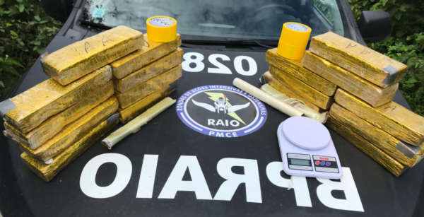 Os “raianos” diligenciaram até a Rua Mateus Lemos, local informado na denúncia. Em uma das casas abordadas, não havia ninguém, mas os policiais encontraram pouco mais de 18 quilos de maconha divididas em 17 tabletes, além de uma parte triturada e pronta para a venda. Uma balança de precisão também foi encontrada no local. Ainda de acordo com as informações enviadas a equipe do BPRaio, a vila de casas pertence ao suspeito apontado como o proprietário das drogas.