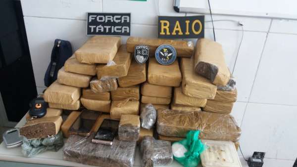 De imediato, os policiais já visualizaram um pacote de maconha na sala. Dando continuidade às buscas, os militares apreenderam duas caixas, também com maconha, no quintal do imóvel. Já em um dos quartos, dentro de um guarda-roupa foram encontrados mais entorpecentes, que ao término, totalizaram 36,7 quilos de maconha e 281 gramas de cocaína. Foram encontradas ainda duas balanças de precisão e aparelhos celulares.