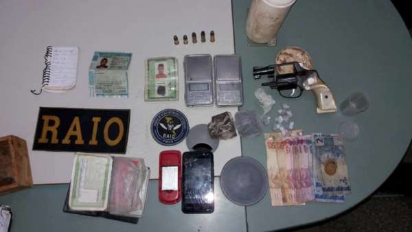 Um dos homens foi identificado como Jonathan Freitas da Silva (23). Questionado pelos policiais, ele disse ser o proprietário da casa onde parou. Os agentes de segurança entraram no imóvel e realizaram uma vistoria. Foi encontrado o revólver calibre 38, carregado com cinco munições intactas; 76.5 g de maconha; 4,3 g de cocaína; duas balanças de precisão; R$ 142 em espécie; dois aparelhos celulares e uma caderneta com anotações.