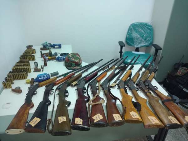 Trinta e cinco armas de fogo e mais de 400 munições de diversos calibres foram retirados de circulação. A apreensão do arsenal é o resultado final da operação realizada pela Polícia Militar do Ceará (PMCE) no Sertão Central cearense. Dez pessoas foram presas em flagrante e mais de 100 pássaros silvestres e outros materiais ilícitos estão entre as apreensões. A operação foi realizada por policiais militares do Batalhão de Polícia do Meio Ambiente (BPMA). As ações, que se encerraram no último sábado (12), tiveram início no dia 4 de maio e passaram por seis municípios cearenses. A operação objetivou apreender armas, munições e inibir a prática de delitos como crimes ambientais na região.