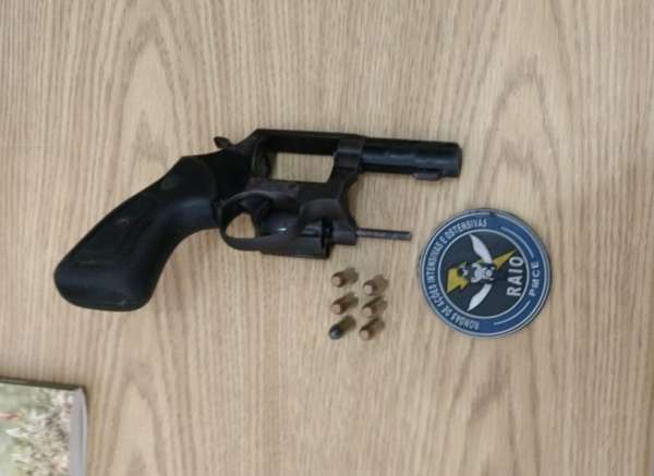 Por meio de uma revista no local, foi encontrado dentro de uma bolsa, no quintal da casa, um revólver calibre 38 com seis munições. Antônio Joaquim foi encaminhado a sede da Delegacia Metropolitana de Maranguape, onde foi autuado em flagrante por posse ilegal de arma de fogo.
