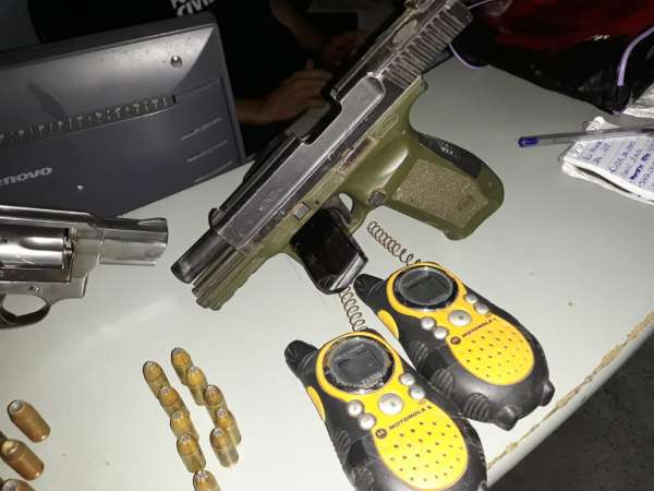 Em sua casa foi encontrada, próximo ao muro, uma pistola calibre 9 mm contendo dez munições. Já no telhado, os policiais apreenderam um revólver calibre 38, com sete munições. No quintal da casa, dentro de um galinheiro, também foi encontrado um vasilhame com maconha e crack pesando 24 gramas. E por último, na cozinha da propriedade, foi encontrada, em uma gaveta, 14 munições calibre .40 e dois rádios comunicadores.