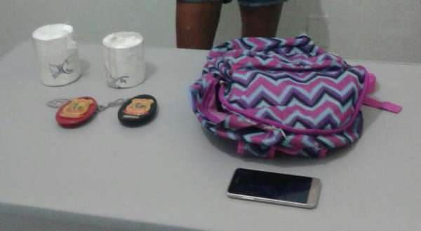 A equipe da Polícia Civil chegou até a primeira suspeita a partir de uma denúncia anônima, que apontava que uma mulher estava em um ônibus que chegaria à cidade e que esta transportava drogas. De posse das informações, os agentes de segurança saíram em diligência até a rodoviária local, onde realizaram a abordagem de um veículo vindo do município de Mombaça (AIS 20), onde localizaram a mulher, identificada como Paloma da Silva (25). Com ela, os policiais encontraram 1,2 kg de cocaína. A droga estava embalada em dois pacotes e escondida na mochila da mulher.