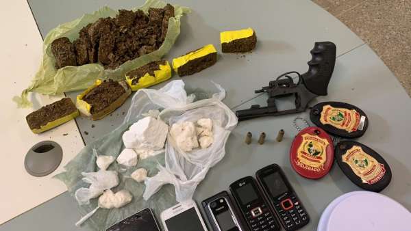 De acordo com a Polícia Civil, o bando era monitorado há cerca de sete meses e alguns dos integrantes da organização criminosa já haviam sido presos anteriormente. Em continuidade às investigações, os policiais civis seguiram em diligência até a localidade conhecida por Sítio Pai Mané, onde efetuaram uma busca no interior da residência de Francisco Amadeu da Silva Firme (18) – sem antecedentes. Ele estava com sua companheira, uma adolescente de 16 anos, também sem passagem pela Polícia. Lá, a equipe encontrou drogas, um revólver calibre 38, municiado, e dinheiro.