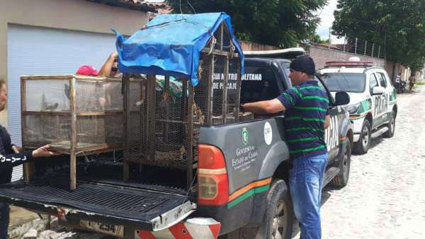 Os militares foram acionados e, chegando ao local indicado, foi constatada a veracidade do fato. Após coleta de informações, os PMs, com o apoio de equipes da Polícia Civil do Estado do Ceará (PCCE) e do Instituto Brasileiro do Meio Ambiente (Ibama), apreenderam as aves.