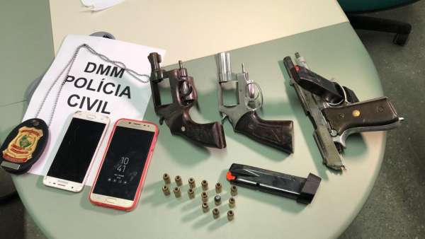 Após um trabalho ininterrupto realizado por policiais civis e militares, na Região Metropolitana de Fortaleza, suspeitos envolvidos em um homicídio, ocorrido na última segunda-feira (8), foram capturados na manhã de ontem (10), na cidade de Maracanaú – Área Integrada de Segurança 12 (AIS 12). Três armas de fogo e aparelhos celulares foram apreendidos, e o material agora será encaminhado à Perícia Forense do Estado do Ceará (Pefoce) para serem periciados.