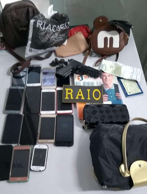 A Polícia Militar do Ceará (PMCE), por meio de uma composição do Comando de Policiamento de Rondas e Ações Intensivas e Ostensivas (CPRaio), realizou a prisão de um homem e de uma mulher que foram flagrados na posse de 15 celulares, bolsas, carteiras, uma mochila e um simulacro de pistola. O casal foi preso em flagrante pela prática de diversos assaltos cometidos na noite desta sexta-feira (23), no Centro do município de Maracanaú, na Área Integrada de Segurança 12 ( AIS 12).