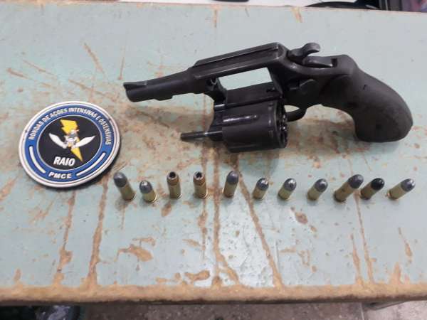 Francisco Mateus foi capturado no interior de um imóvel, onde os militares encontraram um revólver calibre 38 carregado com seis munições sobre o telhado da propriedade. Outras cinco munições do mesmo calibre também foram apreendidas pelo CPRaio. Já o segundo suspeito foi preso pelos PMs ainda na rua. Os dois indivíduos receberam voz de prisão e foram levados para a Delegacia Metropolitana de Eusébio, onde foram autuados em flagrante por porte ilegal de arma de fogo.