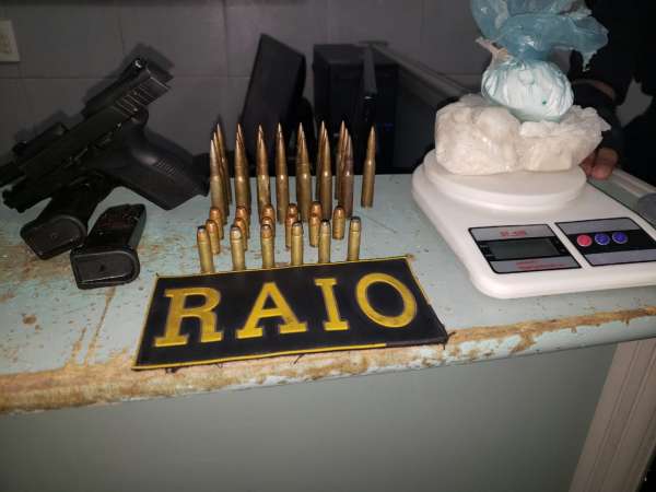 A equipe deixou o imóvel e foi até o terreno com o objetivo de capturar os suspeitos, mas eles conseguiram fugir. Os militares retornaram ao imóvel e, durante buscas no terreno, encontraram uma pistola calibre .40, dois carregadores de pistola, 22 munições de fuzil de calibre 762, seis munições de calibre 38 com as pontas ocas, 11 munições de calibre .40, uma balança de precisão, 400 g de crack e um aparelho celular. Todo material estava acondicionado em baldes de tinta, na parte externa do terreno vizinho.