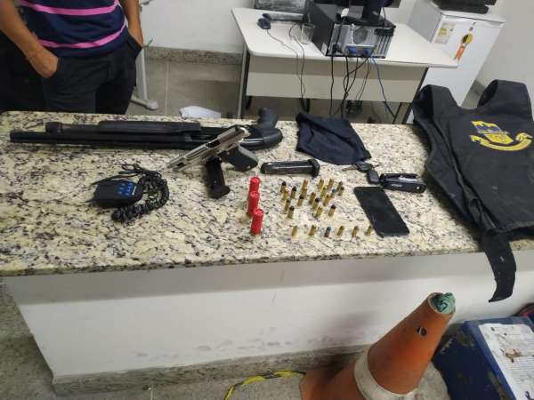 A equipe policial apreendeu uma pistola calibre 380, uma escopeta calibre 12, 28 munições (calibres 12,.40 e 380), dois coletes balísticos, um celular e o veículo utilizado pelos indivíduos. Todo o material foi encaminhado ao 10° Distrito Policial (DP), onde a dupla foi autuada em flagrante por tentativa de homicídio contra os policiais e por porte ilegal de arma de fogo.