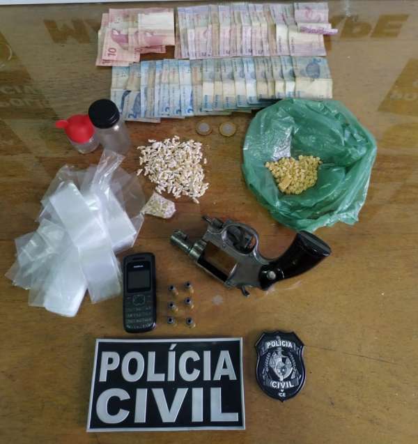 Um trabalho de investigação da Polícia Civil do Estado do Ceará (PCCE) resultou na prisão de um homem que acumulava três mandados de prisão preventiva por crimes de homicídio ocorridos em Maranguape, município que faz parte da Área Integrada de Segurança 12 (AIS 12) do Estado. O suspeito, preso nesta quinta-feira (10), foi flagrado com 600 pedras de crack já embaladas para comercialização e um revólver calibre 38 municiado. Ele também vai responder por tráfico de drogas e posse irregular de arma de fogo.