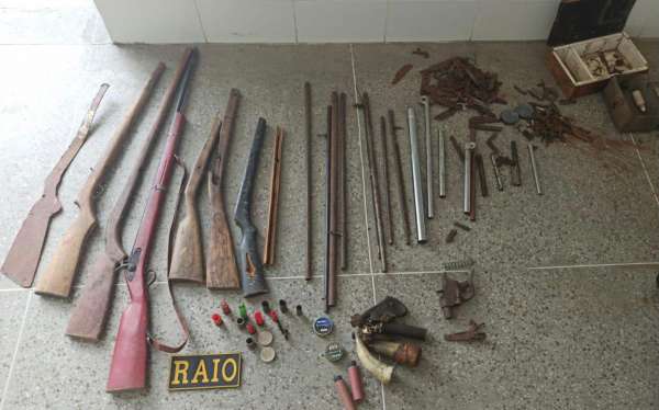 Os policiais militares patrulhavam pela região quando tomaram conhecimento de um endereço que funcionava como oficina para fazer consertos e manutenção de armas de fogo. Imediatamente, eles partiram para o local e confirmaram a denúncia. O proprietário do local, um homem de 78 anos, permitiu a entrada dos PMs. No espaço, foram encontradas uma espingarda socadeira municiada e vários outros componentes de armas de fogo, canos de aço, pedaços de madeira, ferro, pólvora e chumbo.