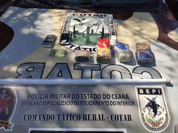 Um homem foi preso em uma ação do Comando Tático Rural (Cotar) da Polícia Militar do Ceará (PMCE), por envolvimento com o tráfico de drogas. A captura aconteceu nessa quarta-feira (03), na localidade de Sítio Timbó, em Ipueiras, na Área Integrada de Segurança 16 (AIS 16) do Estado. Os militares apreenderam mais de um quilo de maconha com o alvo.