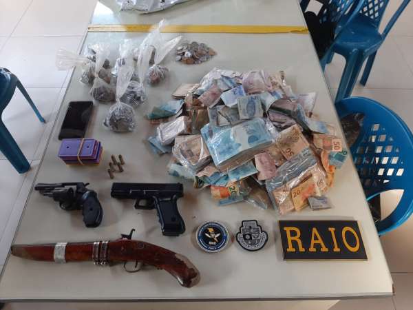 A equipe do Raio patrulhava pelas imediações da lotérica quando foi acionada por populares para intervir num roubo em andamento no endereço informado. Imediatamente os policiais militares se deslocaram e avistaram dois indivíduos portando um revólver calibre 38 e uma garruncha, cada um, ameaçando os funcionários e clientes da lotérica, com as armas em punho. Outros dois suspeitos usaram o telhado do estabelecimento para fugir, deixando para trás um malote com dinheiro e um simulacro de arma de fogo. Do lado de fora, um carro dava apoio à ação criminosa.