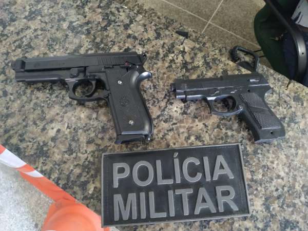 Um rápido trabalho da Polícia Militar do Ceará (PMCE), nas primeiras horas da manhã de hoje (10), resultou na prisão em flagrante de dois homens que estavam em posse de dois simulacros de pistola e uma motocicleta com registro de roubo. Toda a ofensiva policial ocorreu no bairro Jangurussu – pertencente à Área Integrada de Segurança 3 (AIS 3) de Fortaleza. Um inquérito policial foi instaurado no 13° Distrito Policial (DP), unidade plantonista da Polícia Civil do Estado do Ceará (PCCE), onde os homens foram autuados por roubo no concurso de agentes e receptação.
