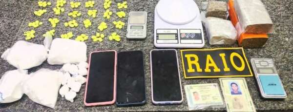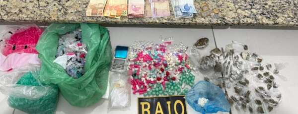 Durante as buscas no interior do imóvel, foram encontradas seis munições, sendo elas dos calibres 20 e 22, diversos sacos plásticos utilizados para embalar drogas, sete aparelhos celulares sem documentação comprobatória de compra, uma quantia em dinheiro trocado, além de uma porção de maconha e de cocaína. Questionados sobre o material encontrado, os suspeitos afirmaram a propriedade do entorpecente, alegando ser para uso próprio e disseram não saber a origem das munições.