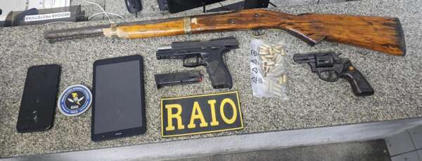 Com os oito indivíduos, foram apreendidas 14 esporas de plástico e quatro de alumínio, uma serra pequena, 11 tesouras, sendo oito delas cirúrgicas, um alicate, uma arena, uma balança e R$ 4 mil em espécie.