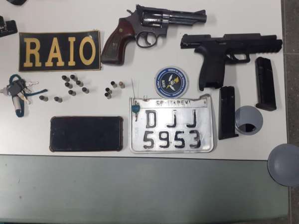Junto a Diego Cardoso da Silva, que foi lesionado durante o confronto policial, foram apreendidas uma pistola, um revólver e munições. Ele é suspeito de participar do homicídio, que vitimou um homem de 19 anos, momentos antes. Diego foi autuado em flagrante por homicídio doloso e encontra-se em unidade hospitalar sob escolta policial.