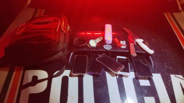 Ao passarem nas proximidades do local, onde a dupla desceu do coletivo, dois homens com as mesmas características foram avistados e abordados. Com a dupla foi encontrada uma bolsa com todos os pertences das vítimas, além de duas facas utilizadas no crime.