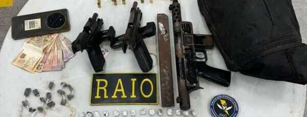Durante patrulhamento pelo bairro Jaçanaú, os policiais militares do Comando de Policiamento de Rondas de Ações Intensivas e Ostensivas (CPRaio) realizaram buscas em um terreno baldio. No local, os raianos encontraram três espingardas calibre 12 e uma submetralhadora artesanal calibre .40, popularmente conhecida como macaquinha, além de cinco munições, sendo três de calibre 12 e duas de calibre .40.