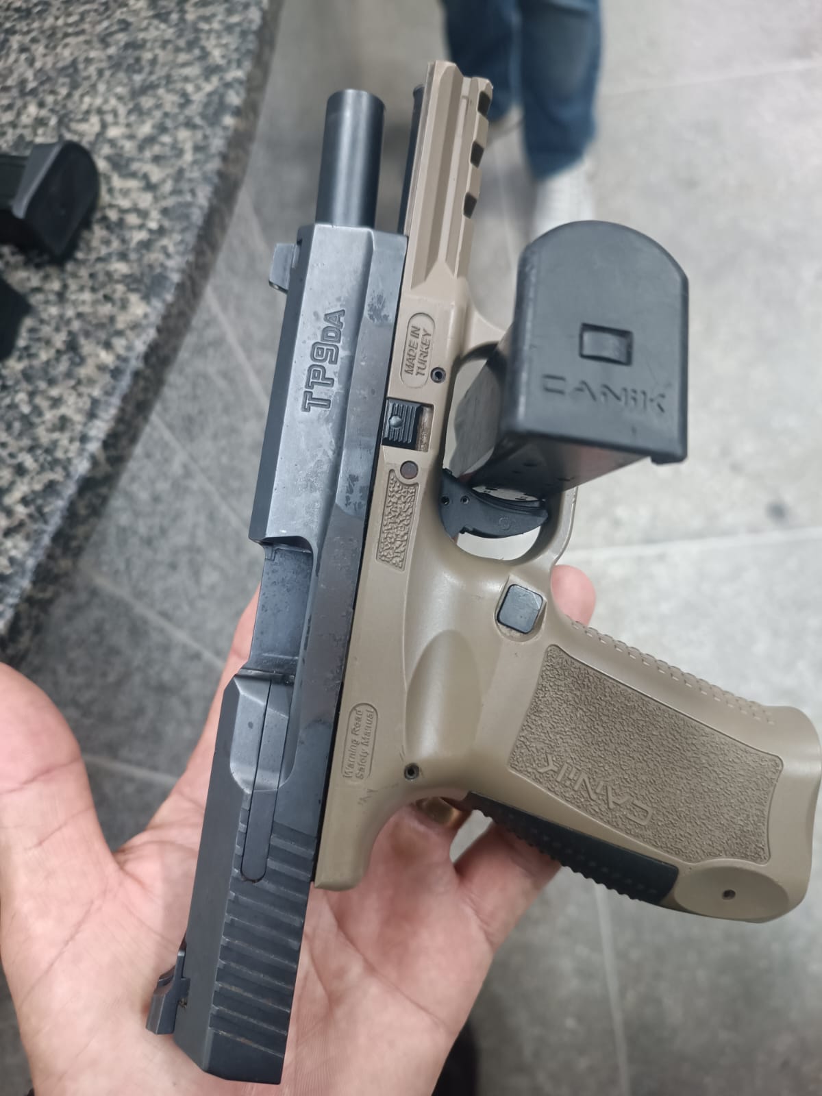 O suspeito foi preso em posse de uma pistola de origem turca e cerca de 100 munições
