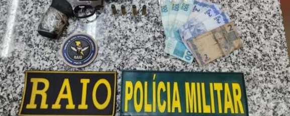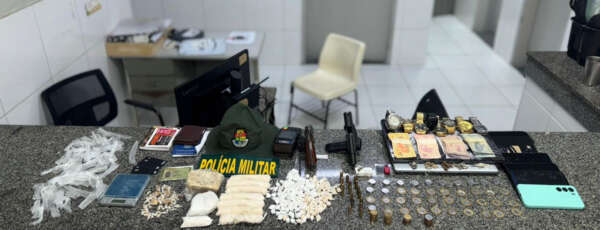 Também foram feitas buscas no local, sendo encontrado um revólver calibre .38, 16 munições de mesmo calibre, um simulacro de pistola, um tablete de maconha e três aparelhos celulares.
