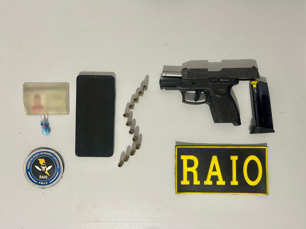 Com as buscas, os militares localizaram uma pistola calibre 9mm com um carregador e 12 munições intactas, além de um grama de pó branco e um aparelho celular. O material estava no interior de veículo, que também foi apreendido e encaminhado para uma unidade plantonista da Polícia Civil do Estado do Ceará (PCCE).