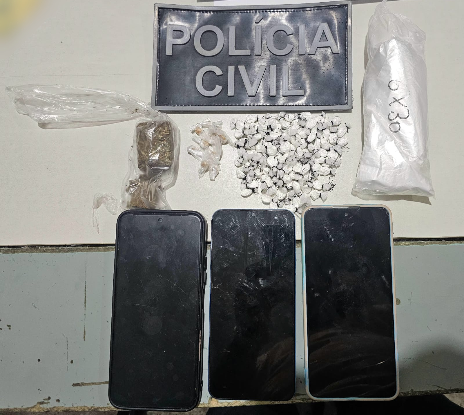 Na mesma ação, os agentes prenderam uma mulher de 40 anos, que já respondia por tráfico de drogas. Com o casal, foram apreendidas drogas, entre elas crack, cocaína e maconha. Diante disso, o casal foi conduzido à Delegacia, onde foi colocado à disposição da Justiça.