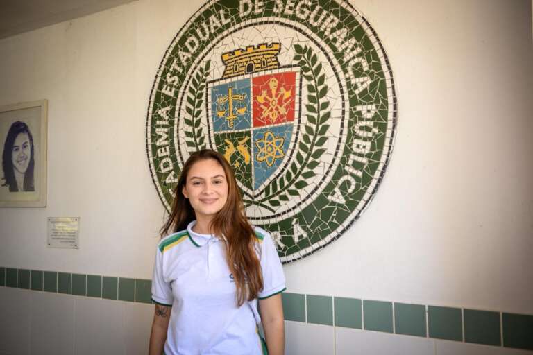 Alguns estudantes revelaram o sonho de ingressar na carreira de segurança pública e demonstraram alegria em conhecer de perto o local onde muitos profissionais iniciam sua trajetória, como a aluna Karla Letícia: “A visita à Aesp foi muito interessante, porque o meu curso de interesse é o de ingresso na Polícia Militar. Foi muito bom vir aqui e visualizar o futuro que eu almejo. Agradeço por todo o acolhimento da Aesp”, comentou.