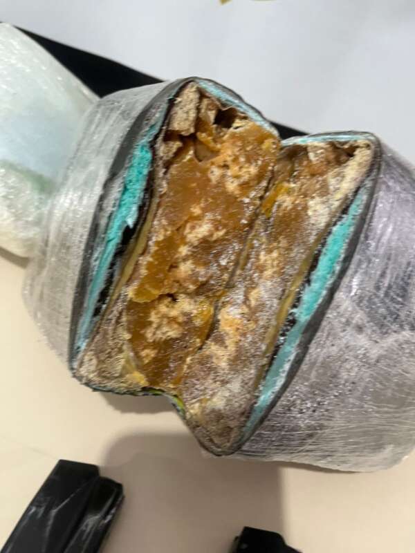 Durante a abordagem, conduzida por equipes da Delegacia de Narcóticos (Denarc), do Departamento de Repressão ao Crime Organizado (DRCO), o cão farejador indicou a presença de entorpecentes em uma das bagagens. Na mala identificada como sendo da suspeita, os policiais encontraram cerca de três quilos de pasta-base de cocaína.