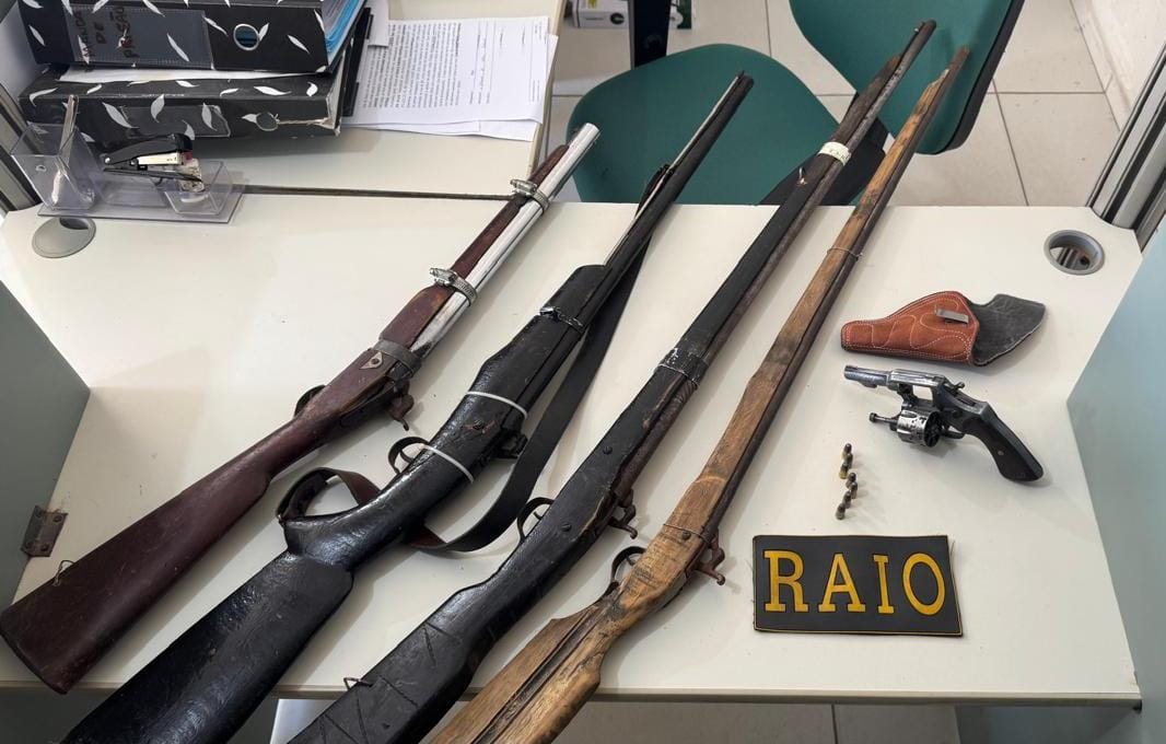Polícia Militar apreende quatro espingardas artesanais, um revólver e munições em Icó