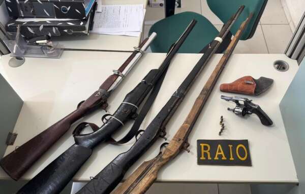 Por volta das 12h20, os raianos realizavam o patrulhamento na localidade do Sítio Mapuá, próximo ao rio Salgado, quando avistaram dois elementos com um saco grande. Ao perceberem a aproximação policial, os suspeitos fugiram pela mata, abandonando o saco que continha quatro espingardas artesanais com o cabo de madeira e um revólver e sete munições .32 no local onde estavam.