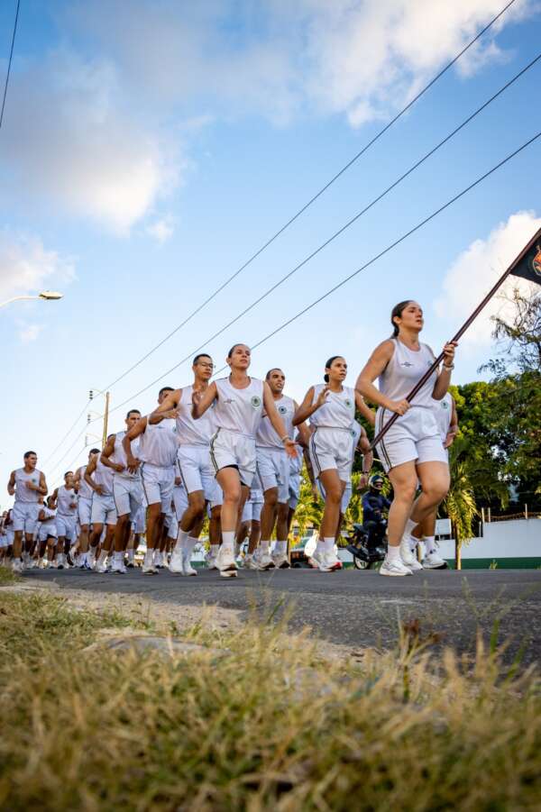 Uniformizados com o traje esportivo branco, brasão no peito e nome de guerra estampado, os cadetes tomaram as ruas do entorno da Academia em um percurso que mistura resistência, disciplina e espírito de corpo. Correndo e entoando canções militares de forma sincronizada e vibrante, os pelotões demonstraram o entusiasmo e a energia típicos de quem está em formação para servir e proteger a sociedade cearense. “Foi o primeiro Corridão do nosso pelotão. Foram sete quilômetros cantando Charlie Mike. Foi muito importante essa integração, acaba elevando nossa autoestima e nossa vontade de continuar, um dia após o outro”, destacou o cadete Taynan, aluno do CFO – 1º Pelotão.