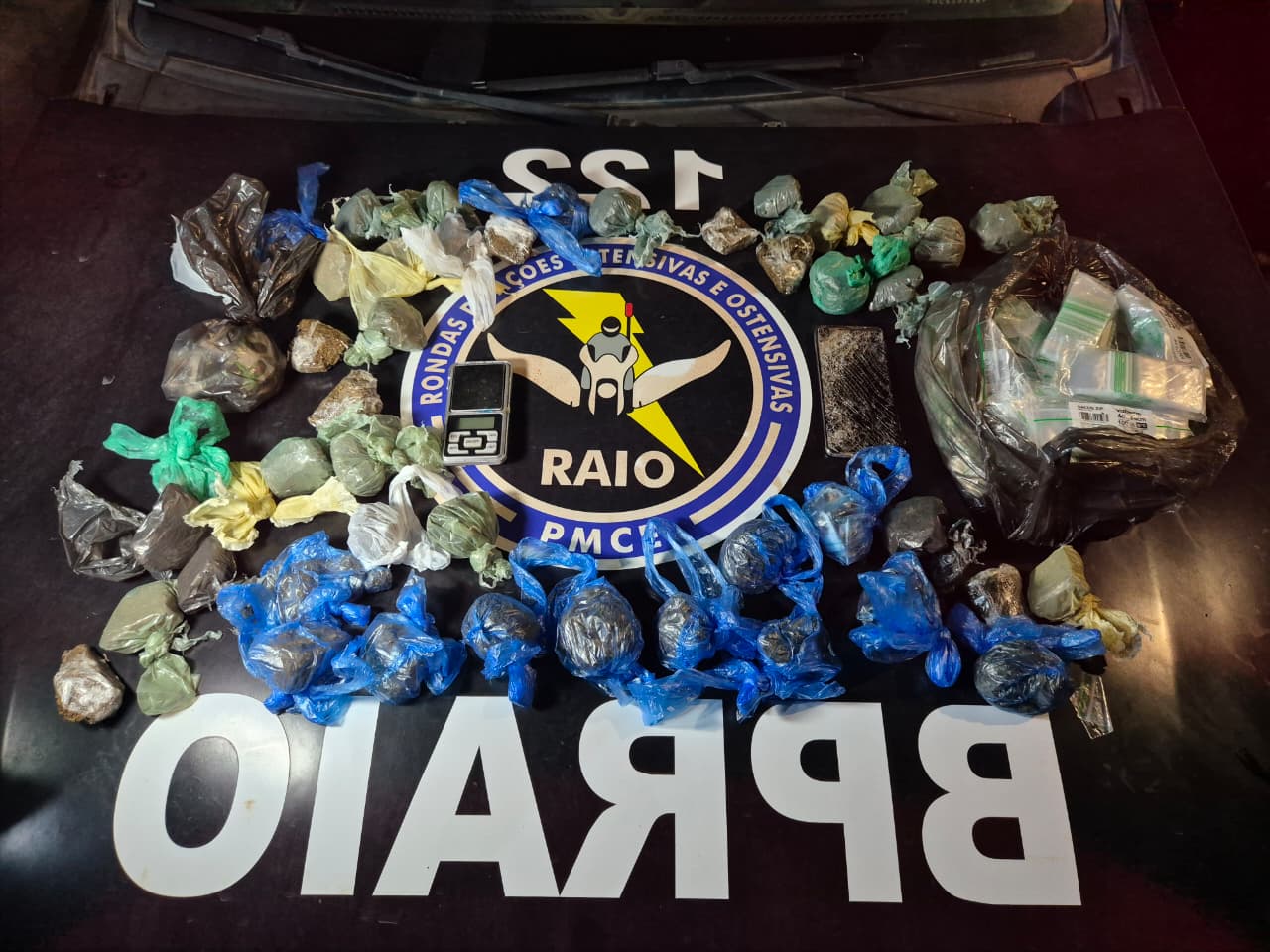 Por volta das 18h30, os raianos receberam informações de que uma residência no bairro Terrenos Novos era utilizada para a venda de entorpecentes. Os raianos seguiram imediatamente até o endereço indicado e montaram o cerco em torno da casa. O indivíduo tentou fugir pulando o muro do quintal e arremessando uma sacola grande, contendo 1,2 kg de maconha, uma balança de precisão e embalagens plásticas, mas foi capturado.