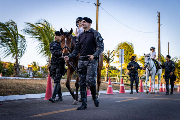 Já na área externa da Academia, as crianças puderam conhecer de perto o trabalho do Comando de Policiamento de Rondas de Ações Intensivas e Ostensivas (CPRaio), do Policiamento com Cães e da Cavalaria da PMCE. Entre demonstrações e interações, os pequenos viveram experiências inesquecíveis, guiadas pelo brilho nos olhos e pela curiosidade infantil.