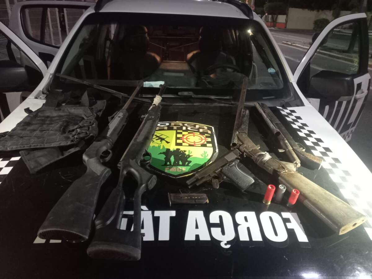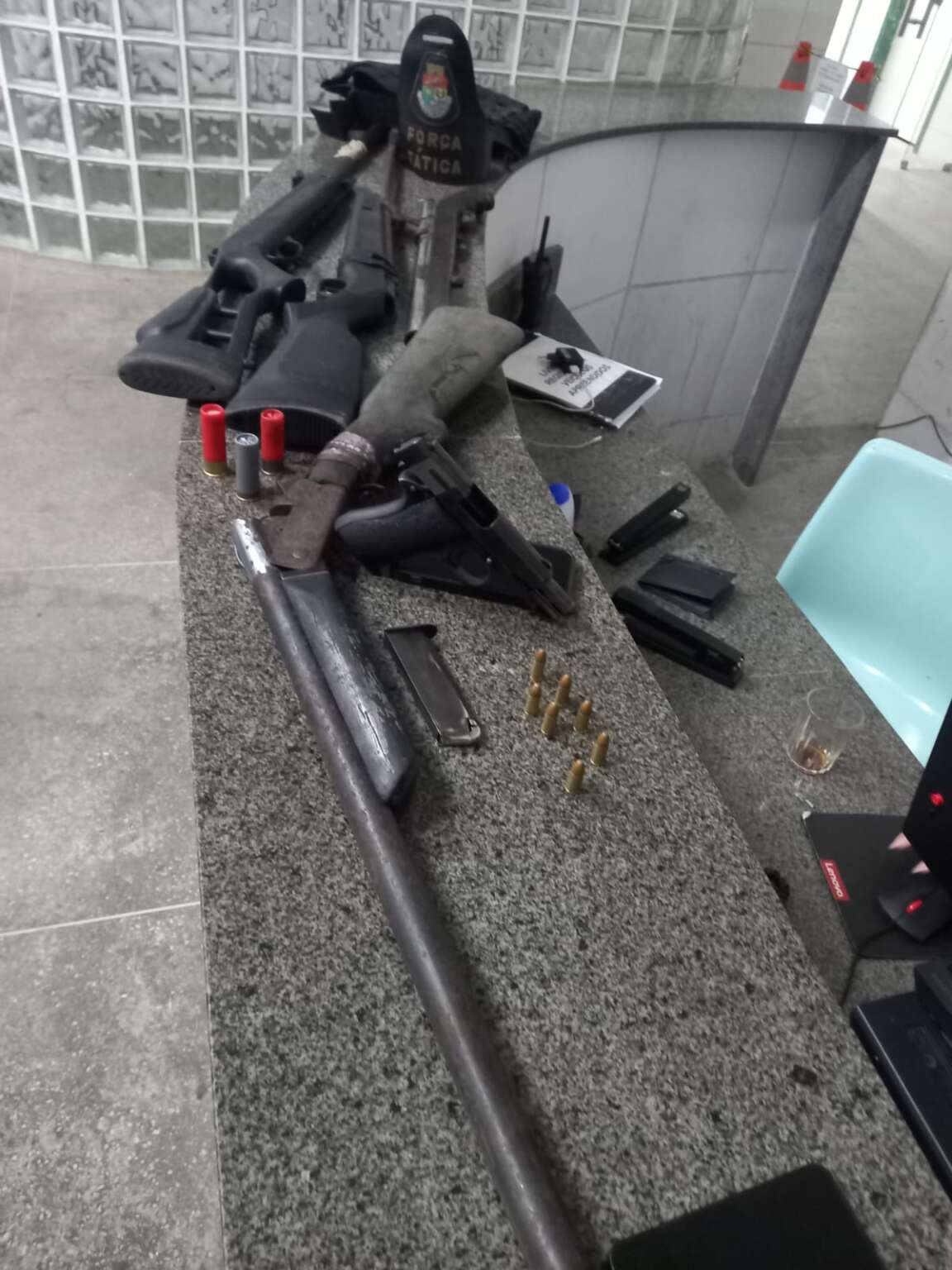 O suspeito, de 37 anos, possui uma extensa ficha criminal, com registros por homicídio, tentativa de homicídio, roubo (duas vezes), tráfico de drogas (cinco vezes) e dano. Após a prisão, outras armas de fogo foram encontradas enterradas em uma área de mata. Ao todo, foram apreendidos: uma pistola calibre 9mm, duas armas artesanais calibre 12, duas carabinas calibre .22 sem numeração, sete munições calibre 9mm, três munições calibre 12, um celular, um tablet, uma capa de colete balístico e um carro.