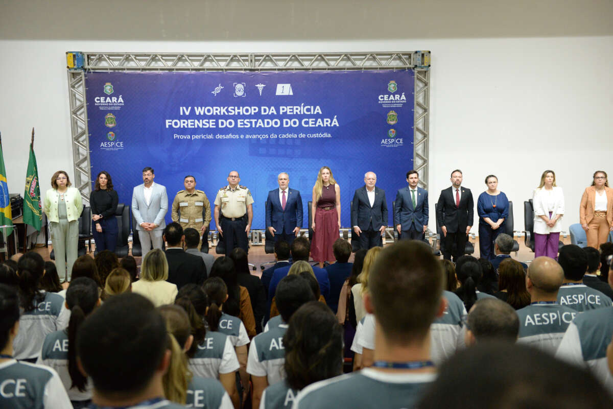 Com a temática “Prova pericial: desafios e avanços da cadeia de custódia”, a Perícia Forense do Estado do Ceará (Pefoce) realizou, na manhã desta terça-feira (25), a abertura do IV Workshop da Perícia Forense. O evento reúne profissionais, especialistas e pesquisadores no workshop, que ocorre dos dias 25 a 27 de novembro, no auditório do Centro de Convivência do Centro Integrado de Segurança Pública (Cisp), na Capital.