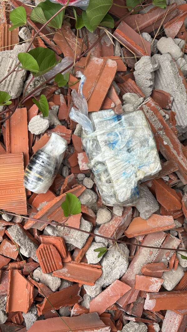 O segundo flagrante, pela prática de tráfico de drogas e porte irregular de arma de fogo, realizado pelas Forças de Segurança envolveu um homem, de 26 anos, no bairro Área Seca. O suspeito, com antecedentes por tráfico e roubo à pessoa, foi preso após policiais civis visualizarem-no arremessando uma bolsa de pano em direção ao quintal do vizinho. A bolsa continha 828 g de maconha, uma granada e uma balança de precisão. Os três aparelhos celulares apreendidos com o indivíduo serão periciados tendo em vista o aprofundamento das investigações.