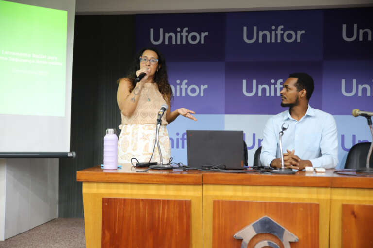 Numa inédita parceria entre a Superintendência de Pesquisa e Estratégia de Segurança Pública (Supesp) e a Universidade de Fortaleza (Unifor) foi realizada, nesta segunda-feira (1), a Palestra “Formação e Letramento Racial para uma Segurança Antirracista”, no campus da Unifor. A apresentação contou com a participação de representantes da Coordenadoria de Defesa Social (Codes/SSPDS) e Comando de Apoio e Prevenção às Comunidades (Copac) da Polícia Militar do Ceará (PMCE).